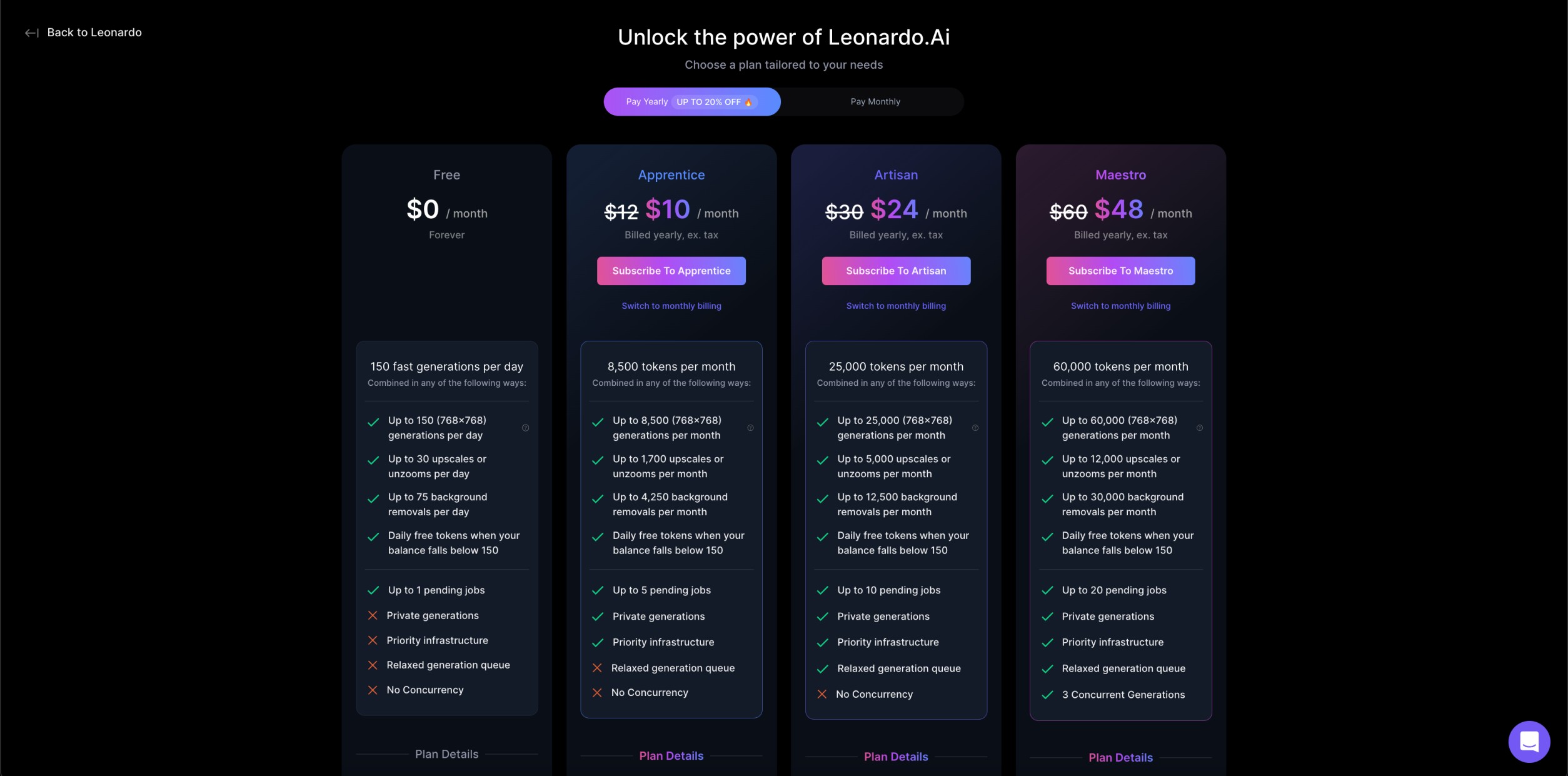 One of the main strengths of Leonardo AI lies in its free plan. It is similar to Dalle, which, unlike Midjourney, allows a specific amount of image generation at no cost. In addition, Leonardo AI’s most expensive plan is around $50 compared to MidJourney’s $120.