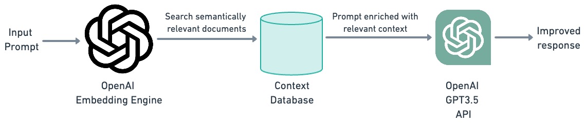 First, let's consider what happens when we use the GPT-3 API directly. The user issues a prompt, and the model responds to the best of its ability.
